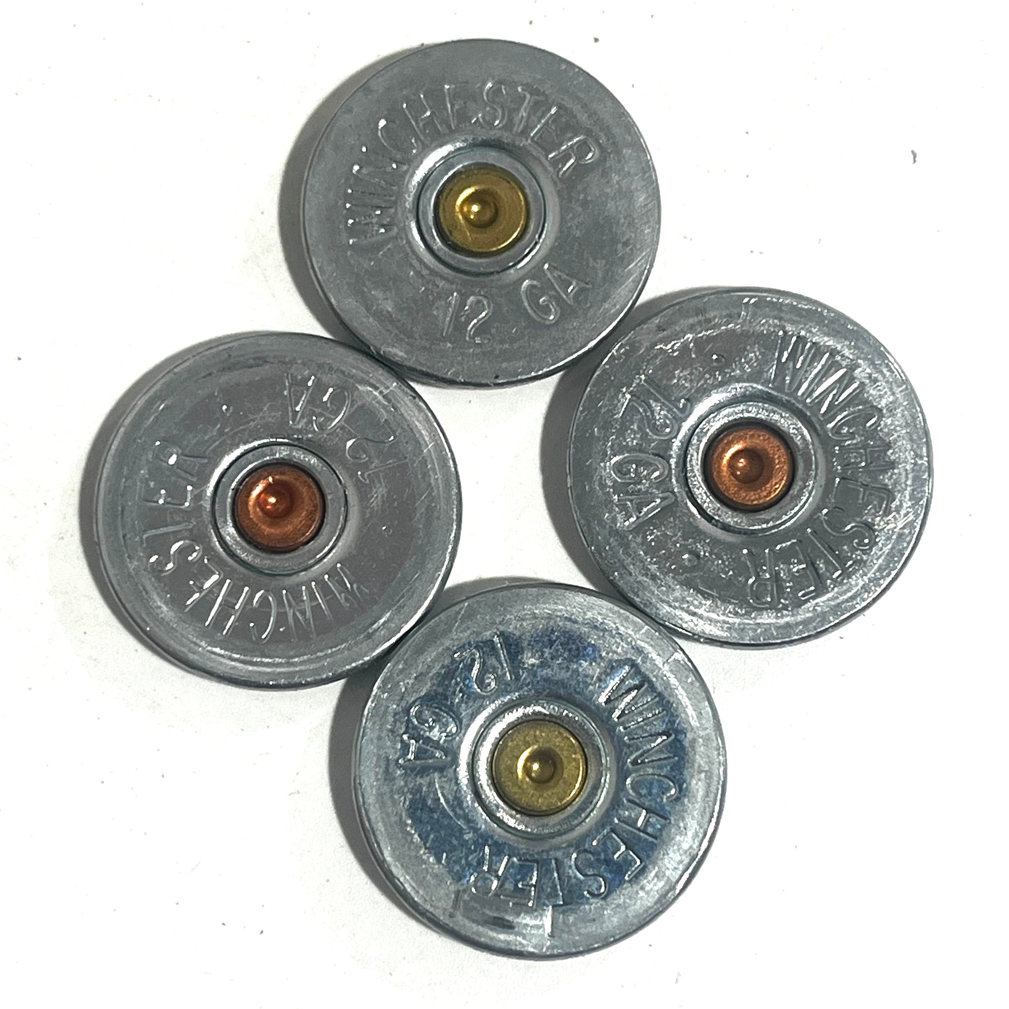 These are rough cut 12 gauge shotgun shell slices. Inert primer intact. Primer color may vary.